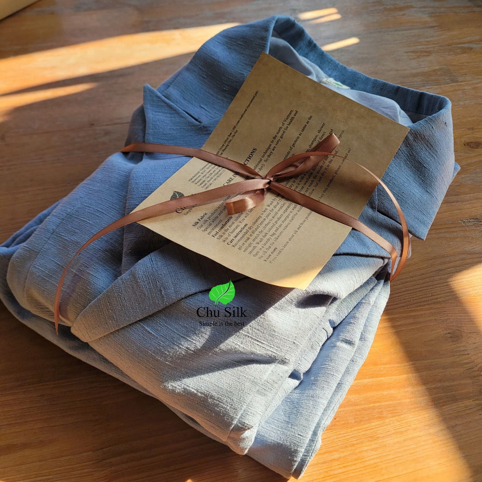 - Quy cách: Đóng gói trong hộp kèm giấy hướng dẫn bảo quản đồ lụa tơ tằm