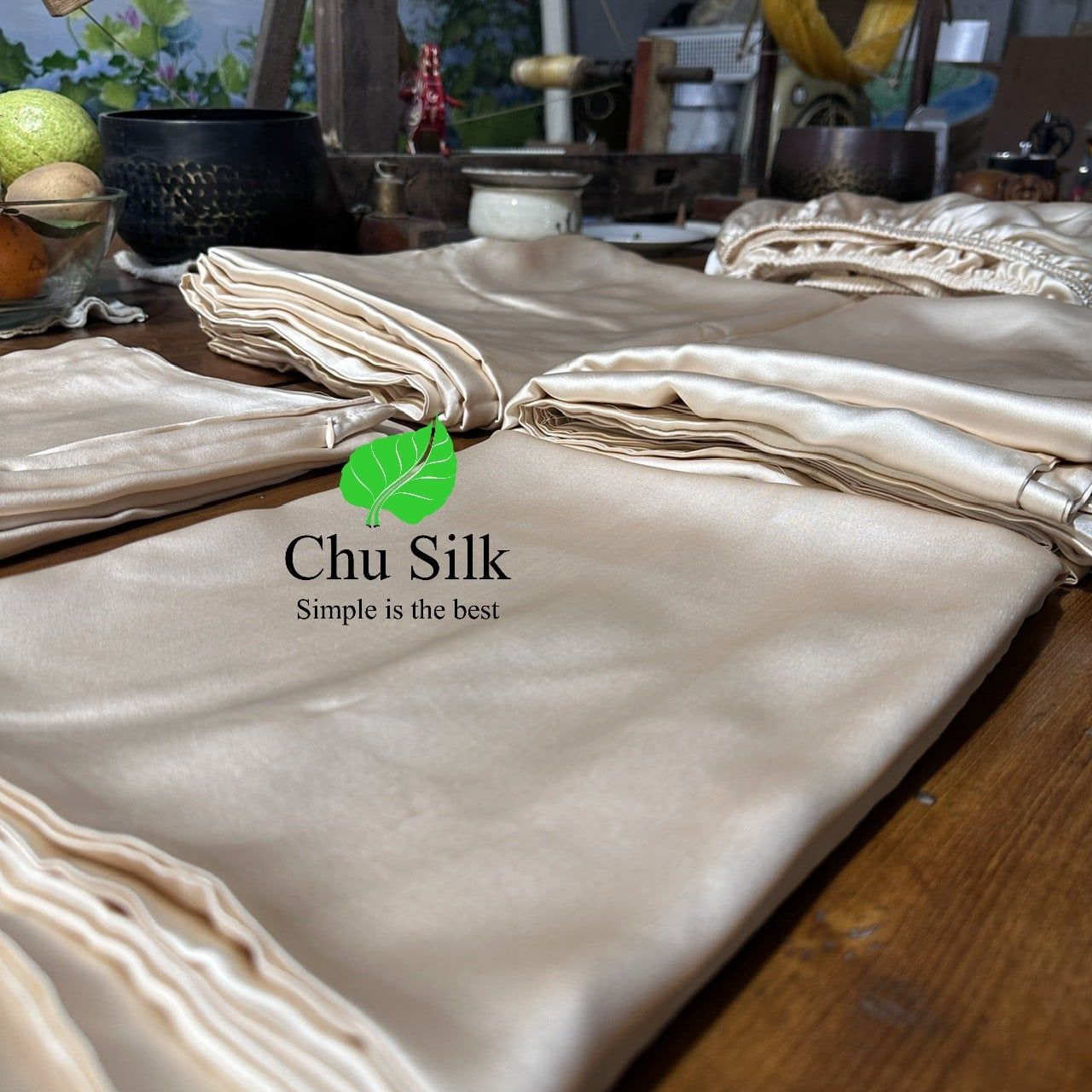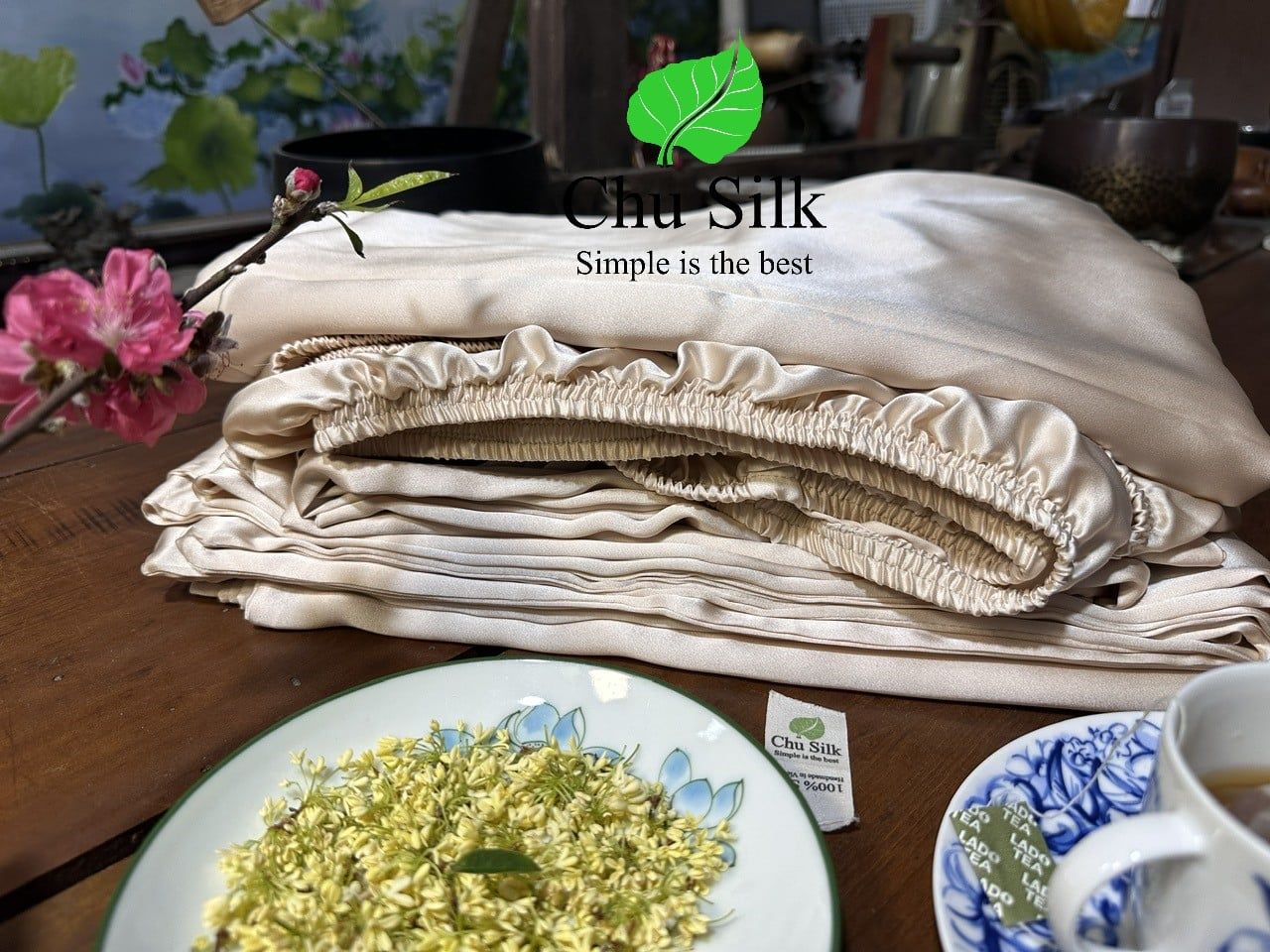 Bộ vỏ ga chăn gối lụa tơ tằm Chu Silk được sản xuất thuần túy tại Việt nam, từ khâu trồng dâu, nuôi tằm tới ươm tơ, dệt lụa và sản xuất ra những sản phẩm cuối cùng cao cấp.