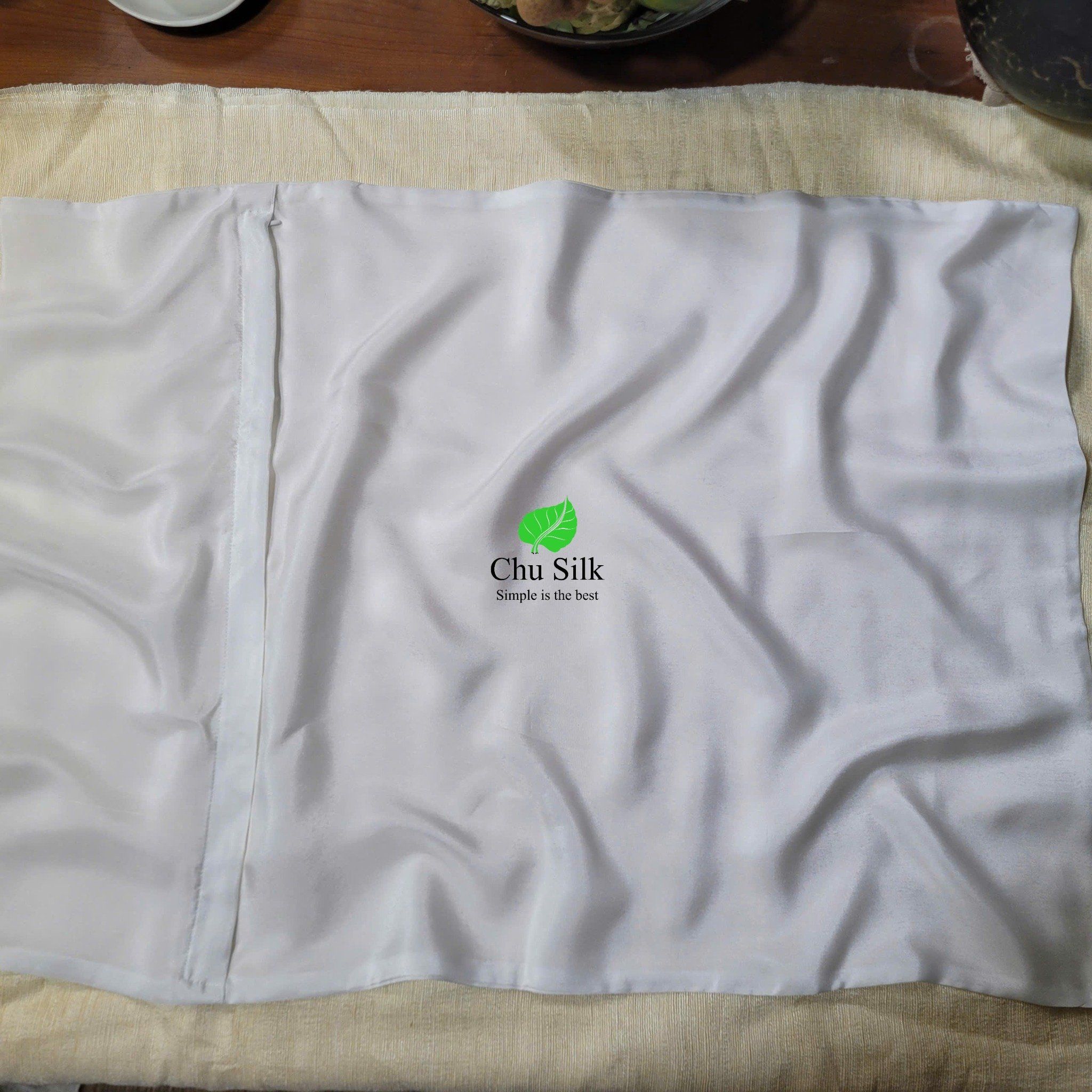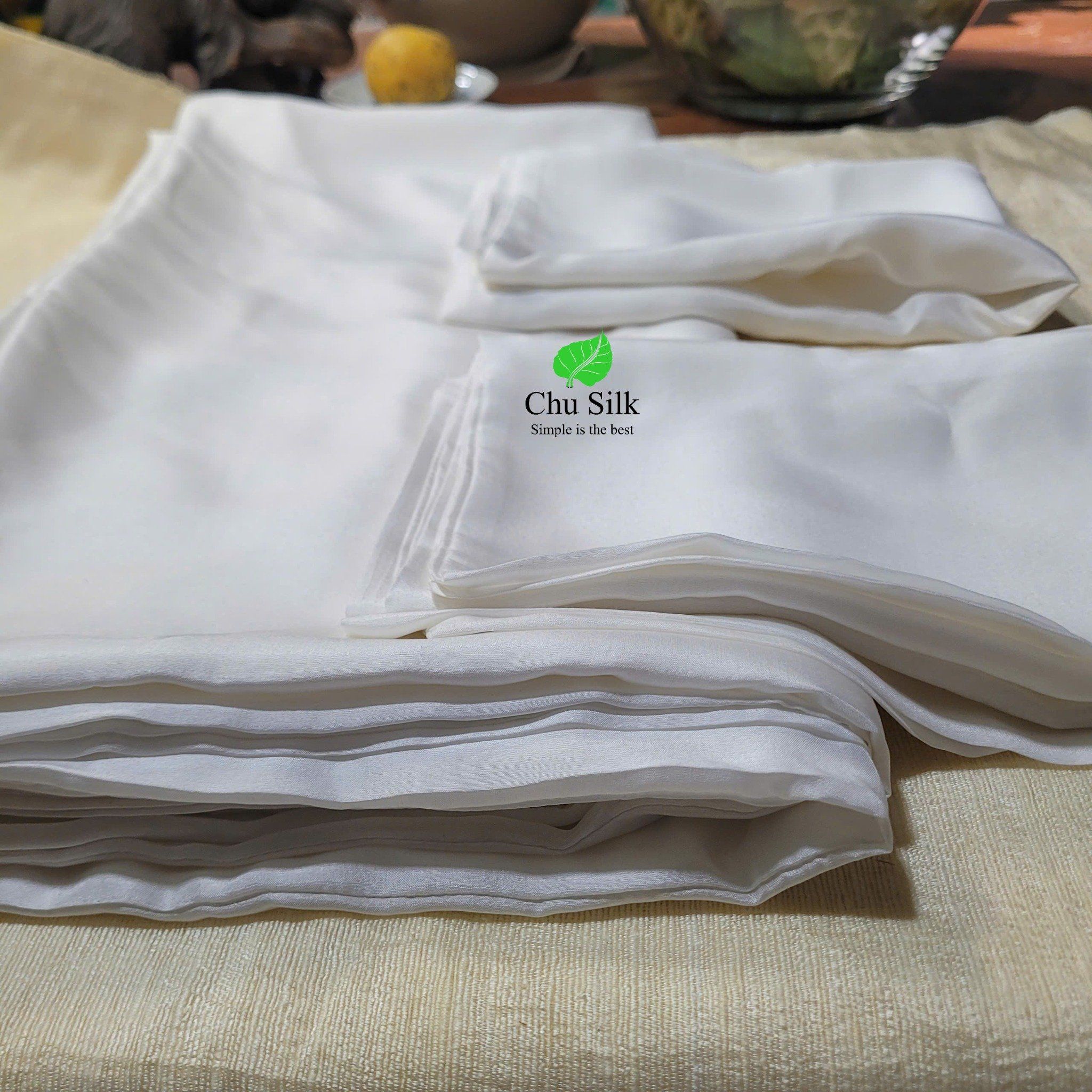 Bộ vỏ chăn gối tơ tằm Chu Silk màu trắng mộc tự nhiên không nhuộm, định lượng dày 12momme