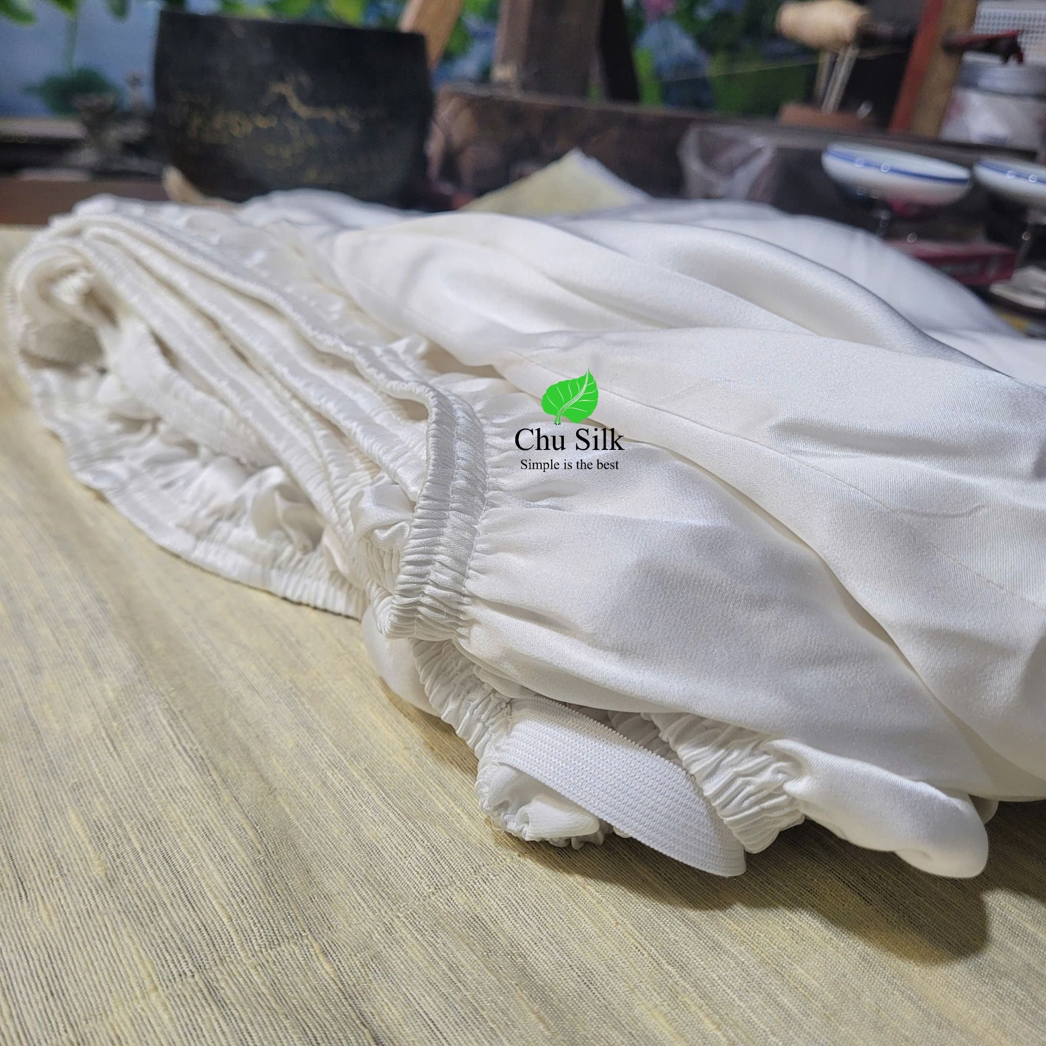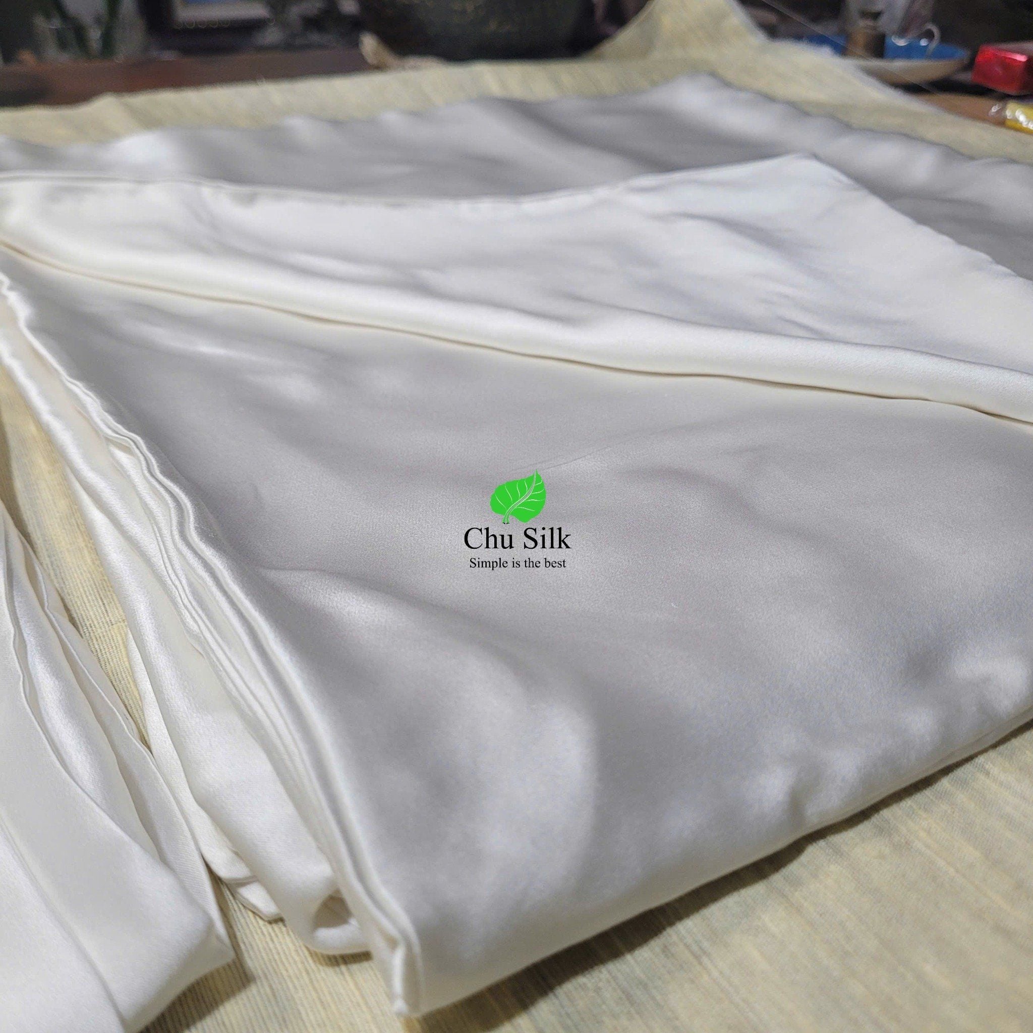 Bộ vỏ chăn ga gối tơ tằm Chu Silk màu trắng mộc tự nhiên không nhuộm, định lượng dày 19momme