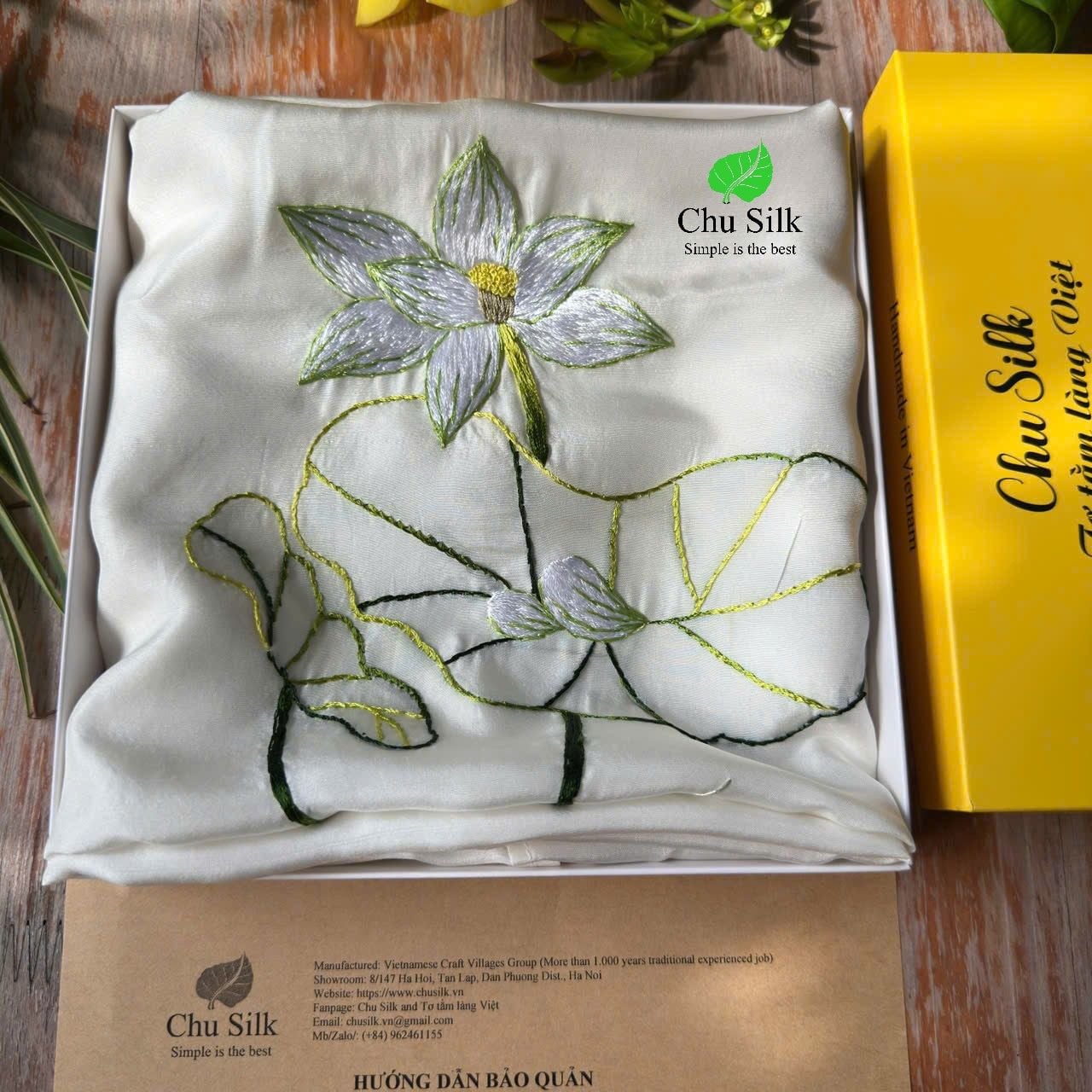 Khăn lụa tơ tằm thêu tay_màu trắng