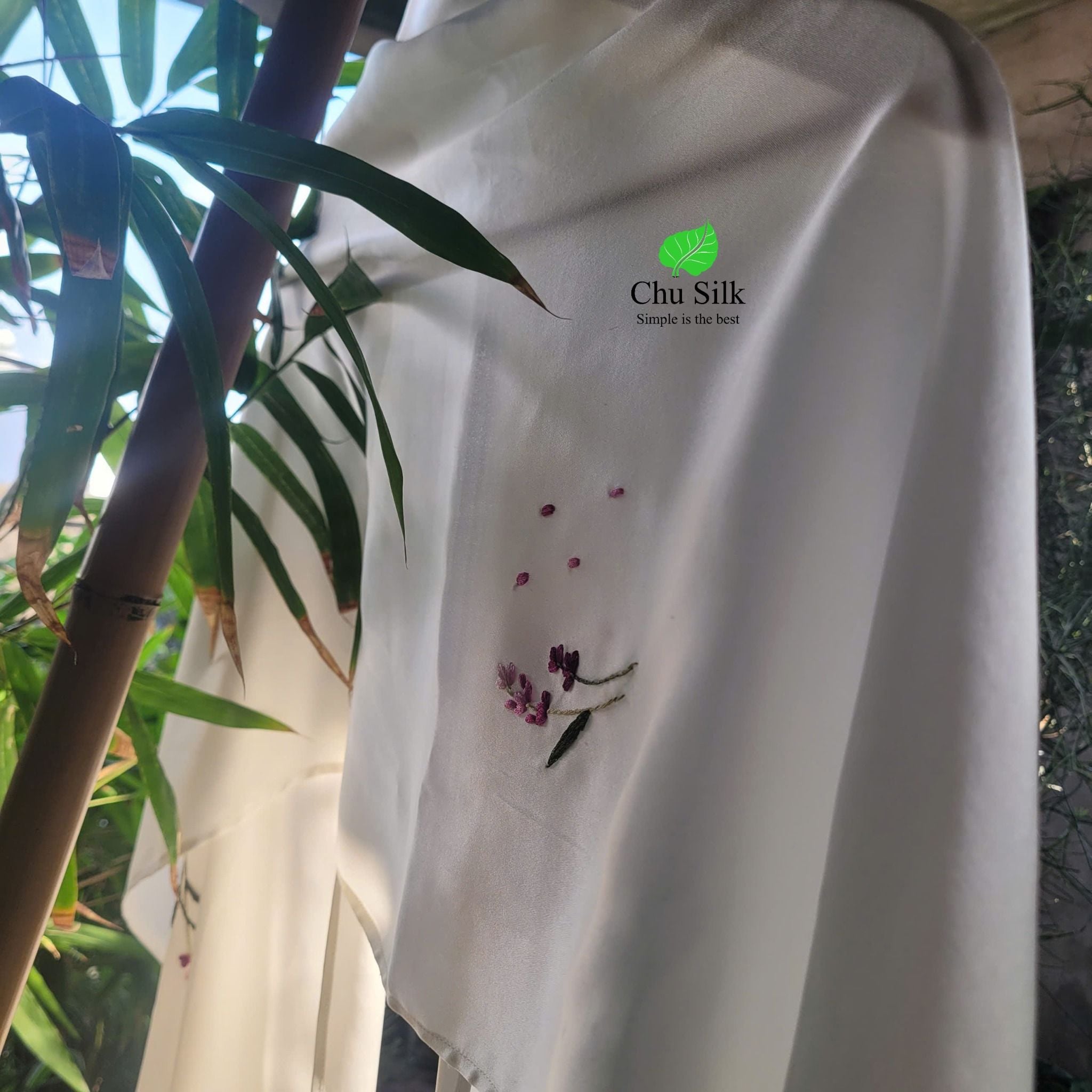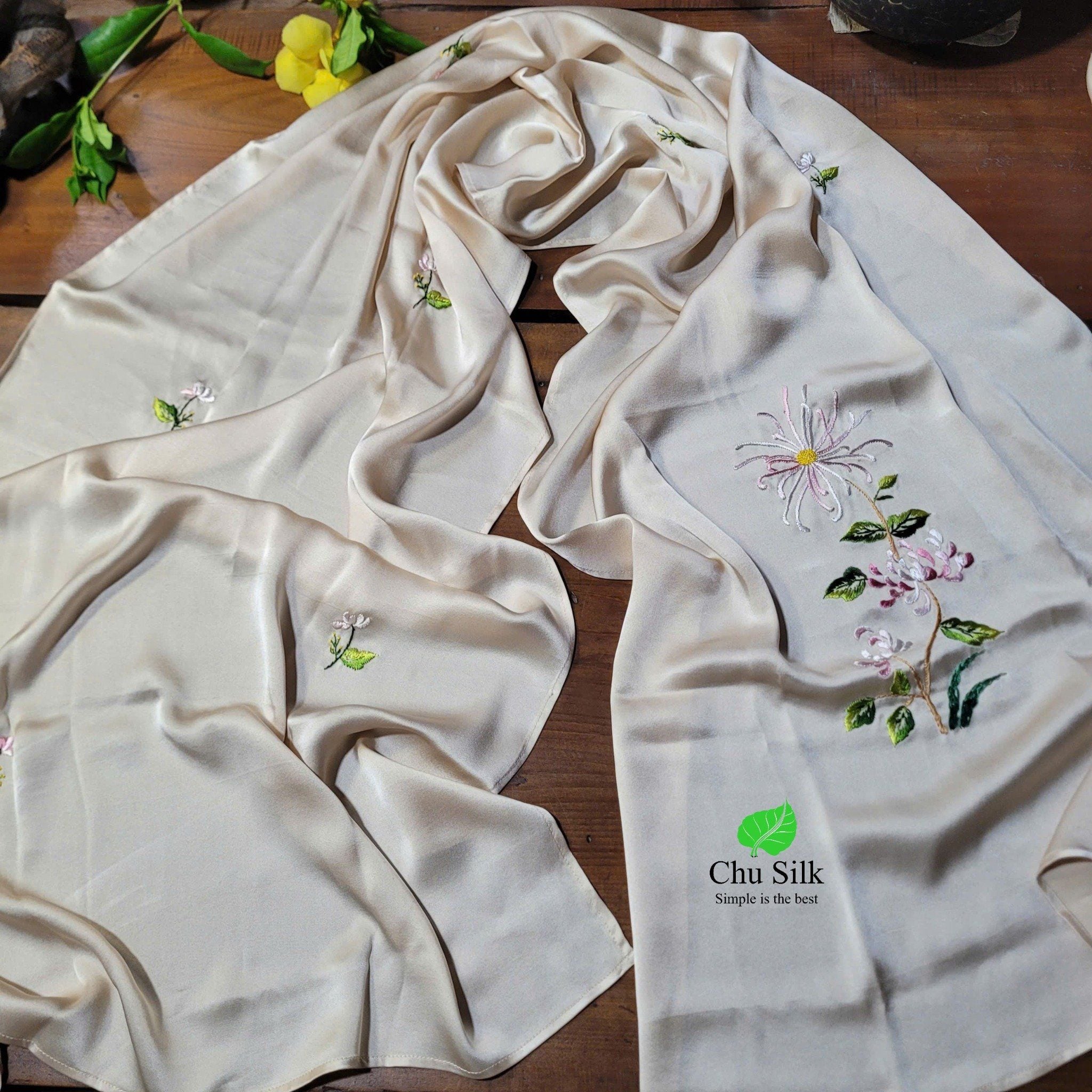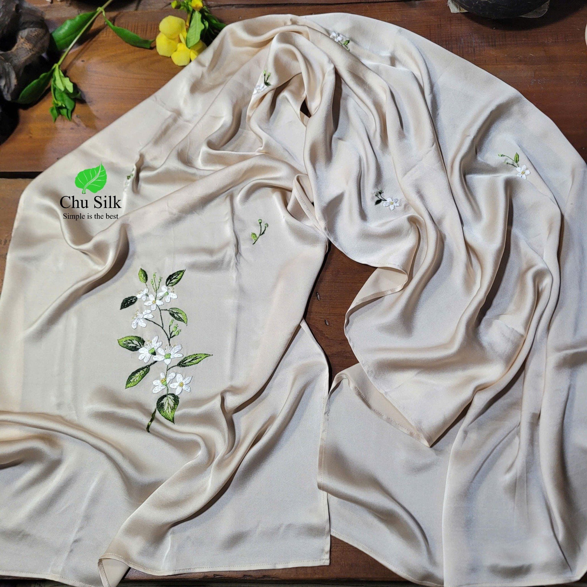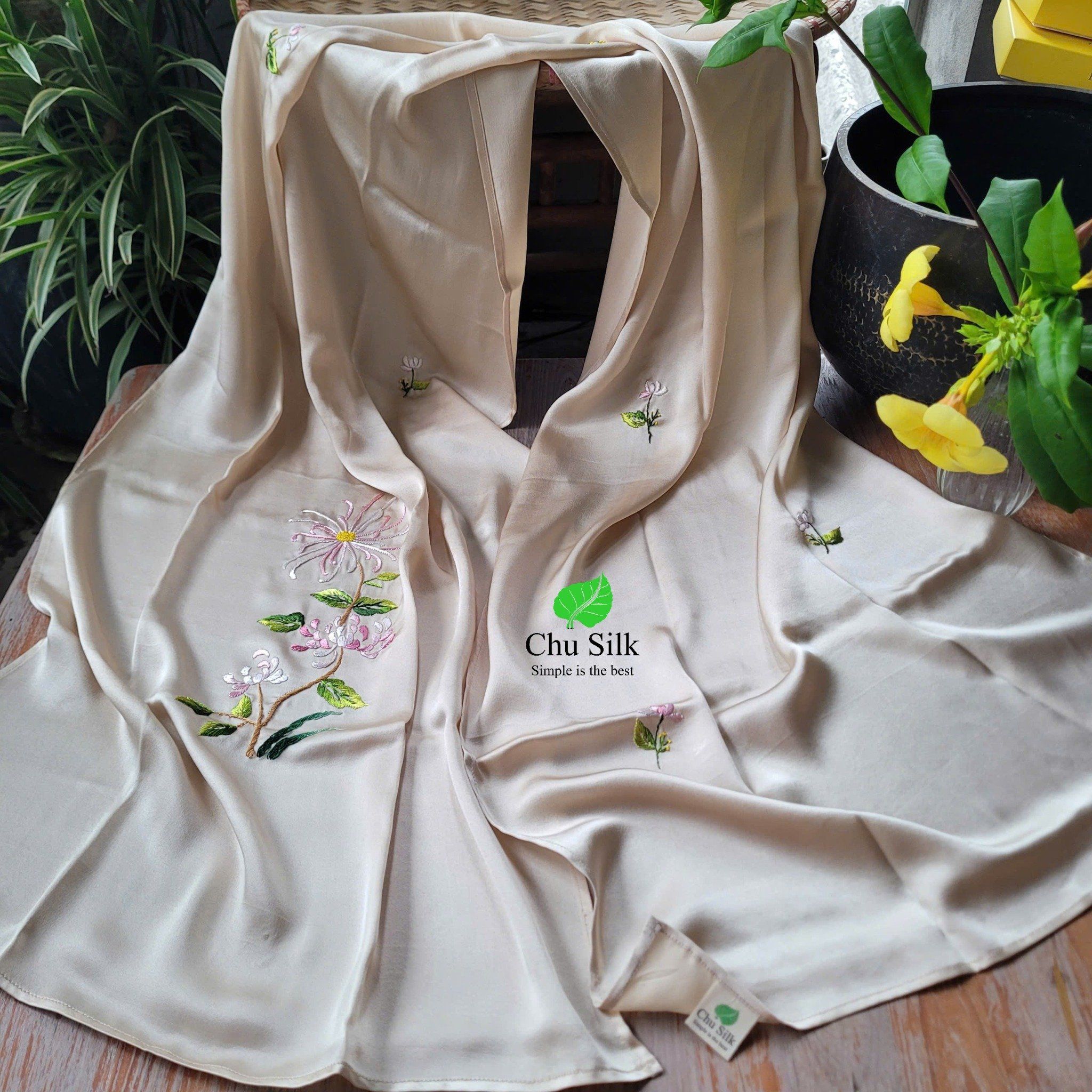Khăn choàng tơ tằm cao cấp thêu tay độc bản