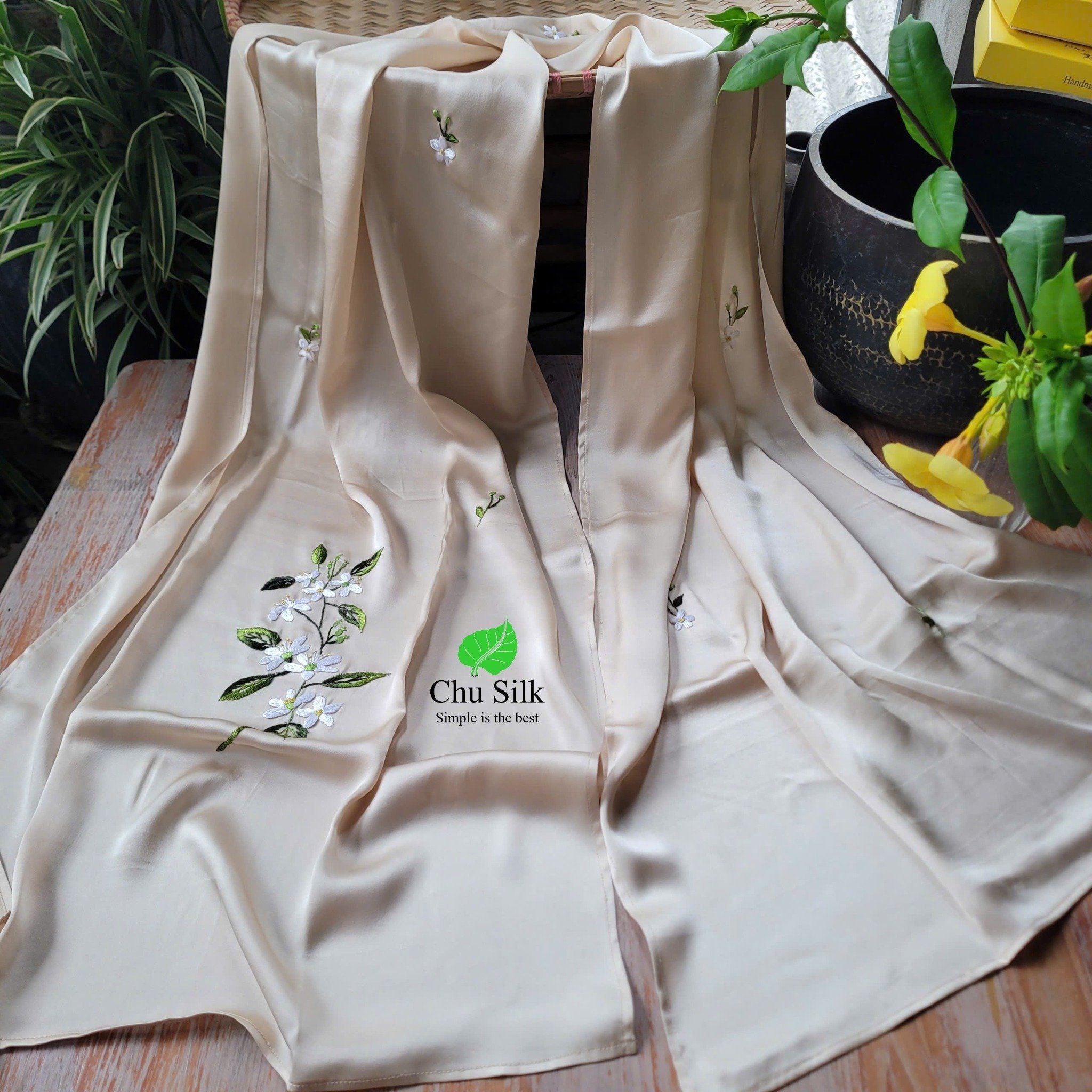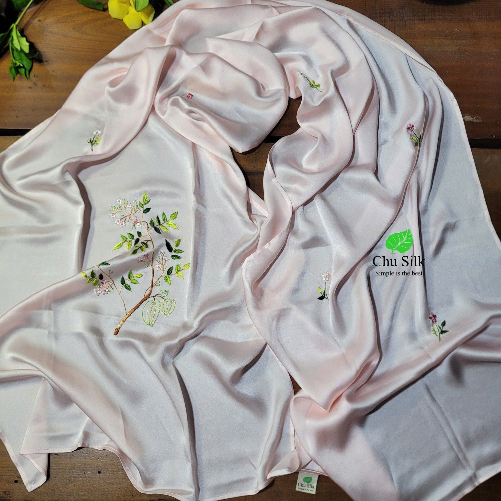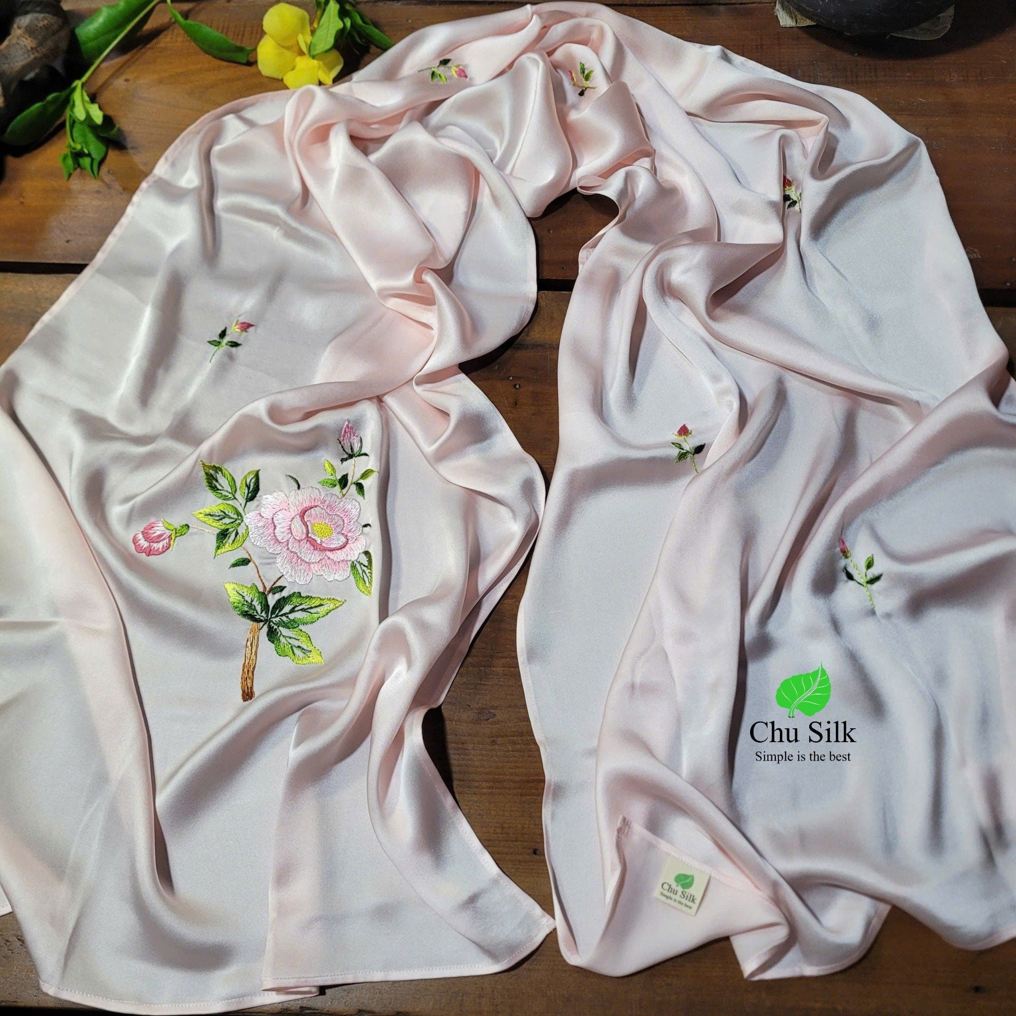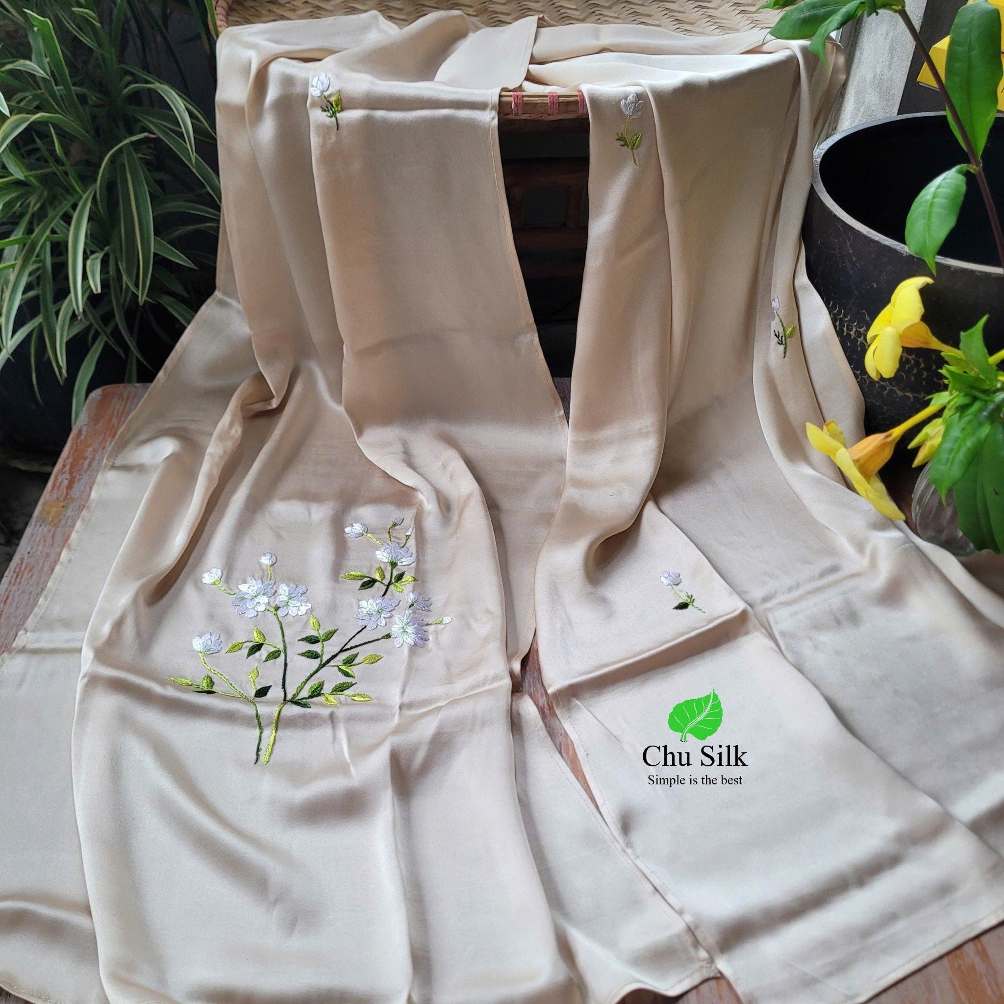 Khăn choàng tơ tằm cao cấp thêu tay độc bản