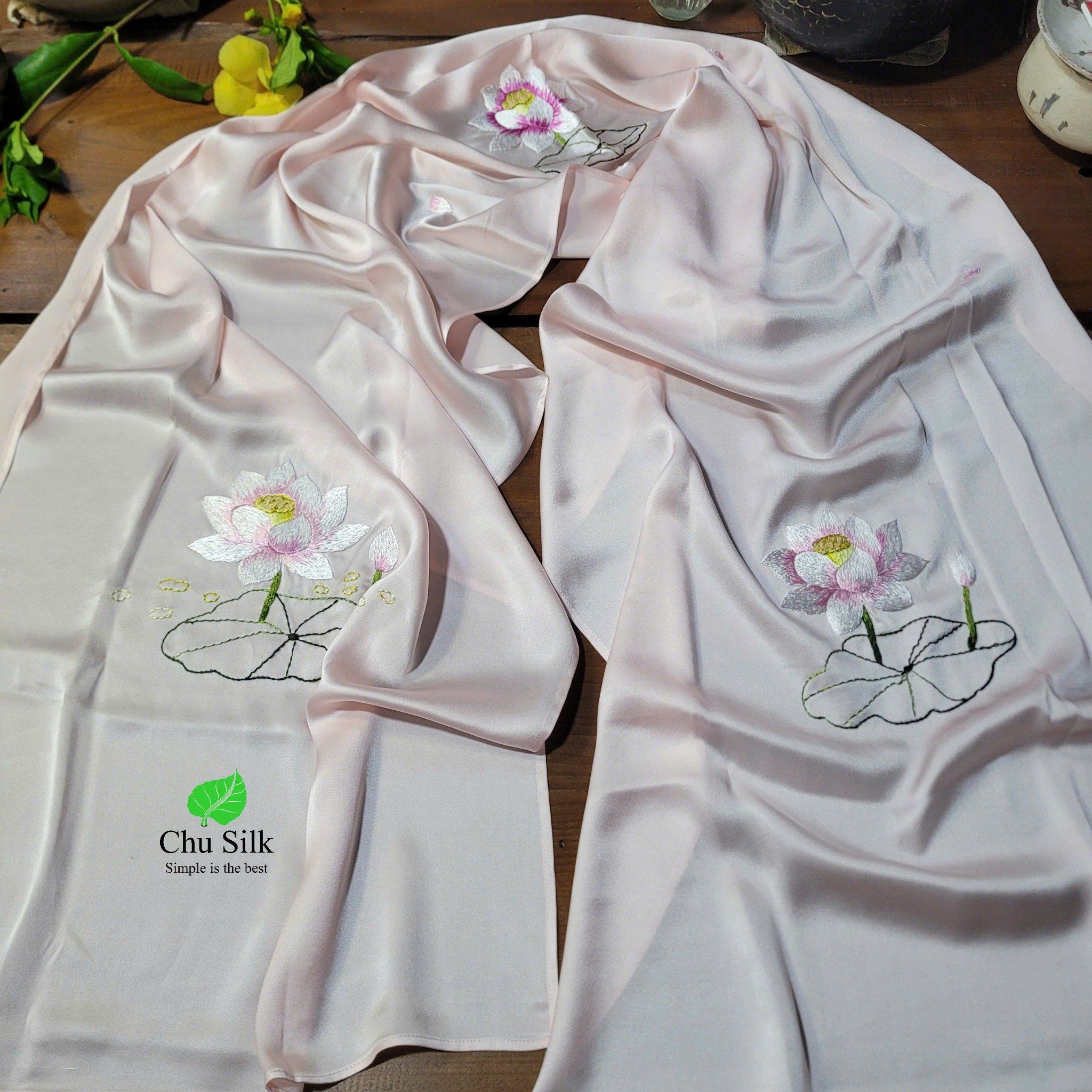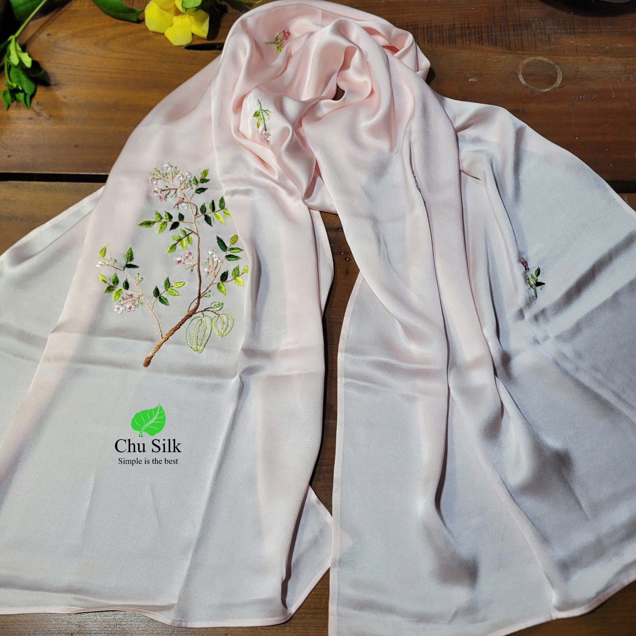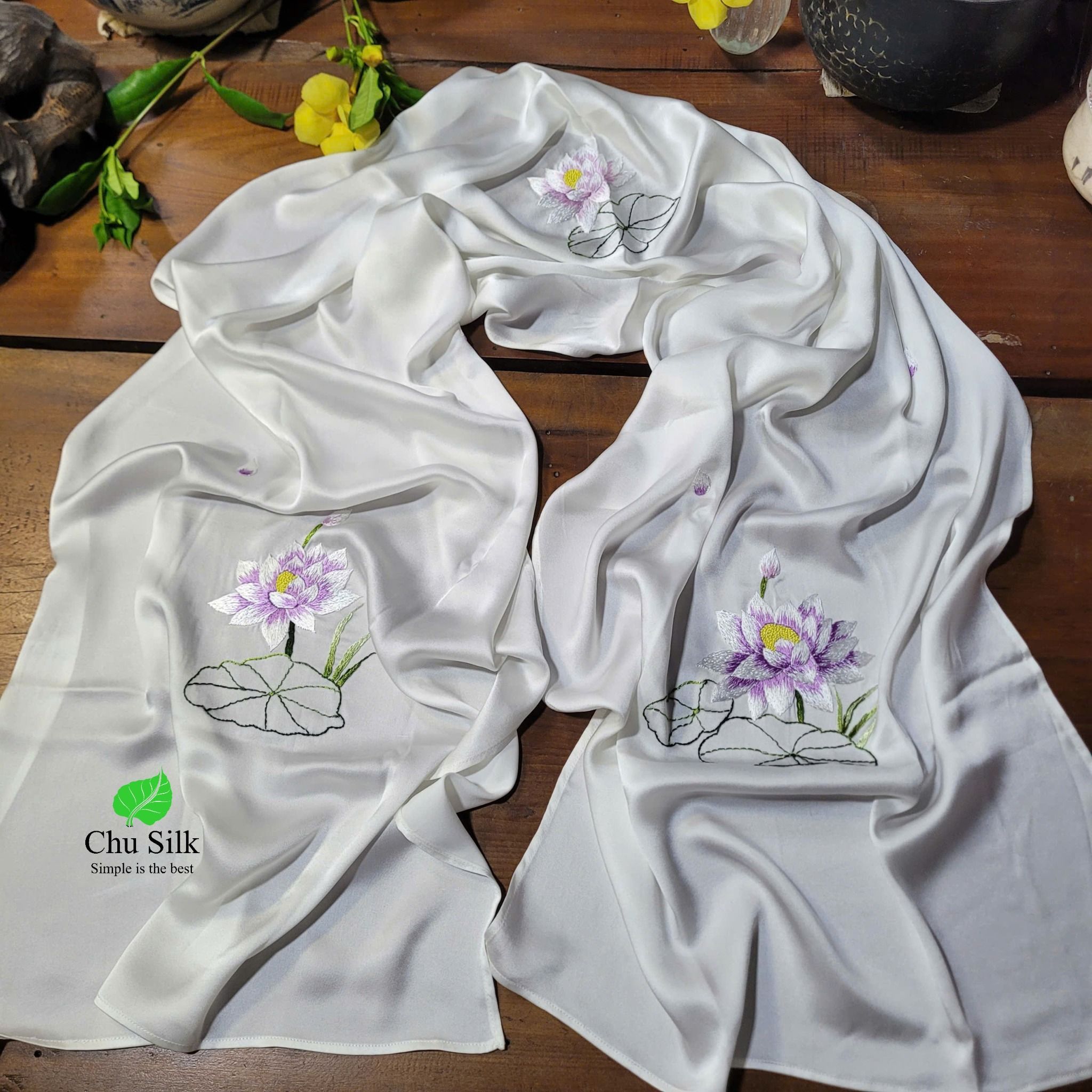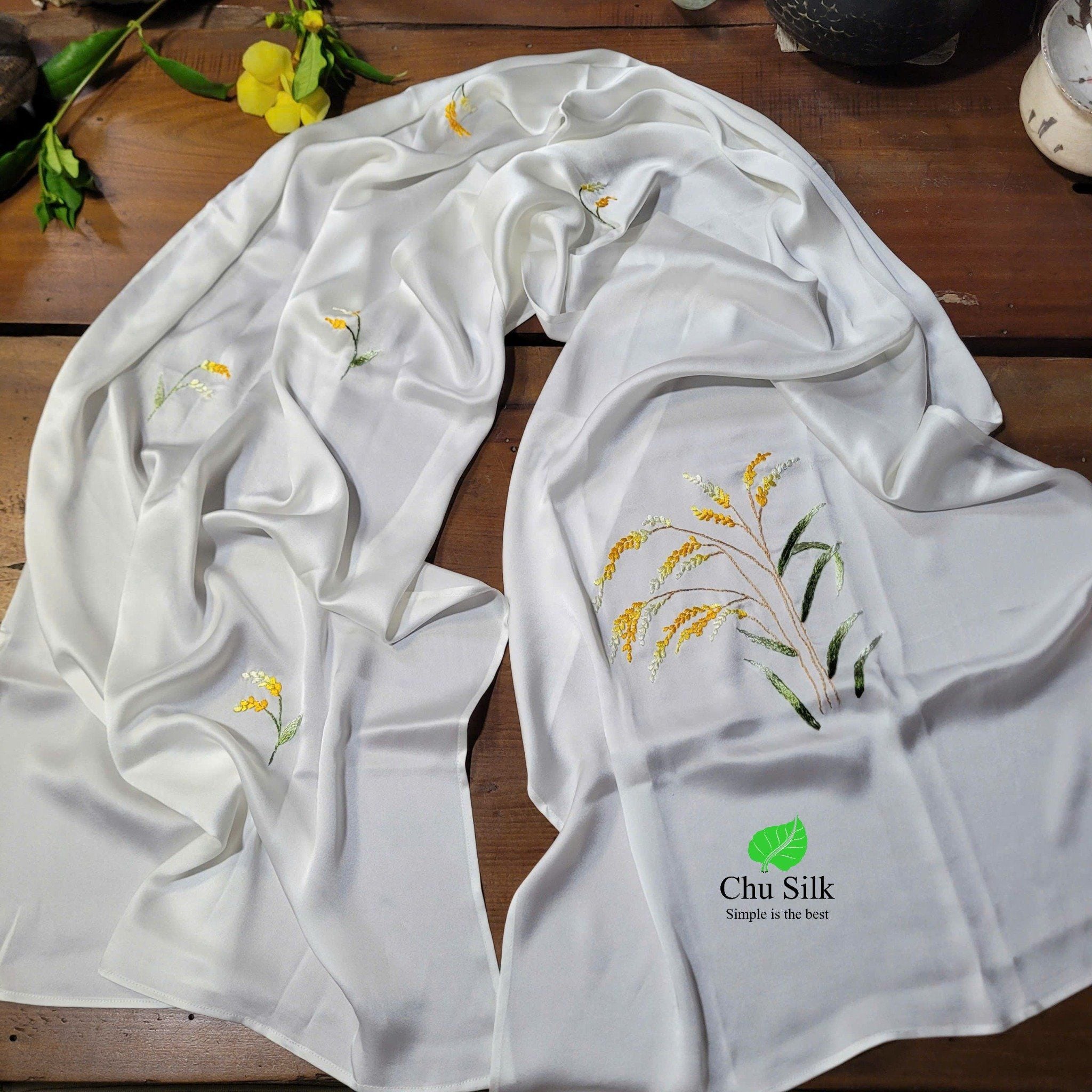 Khăn choàng tơ tằm cao cấp thêu tay độc bản