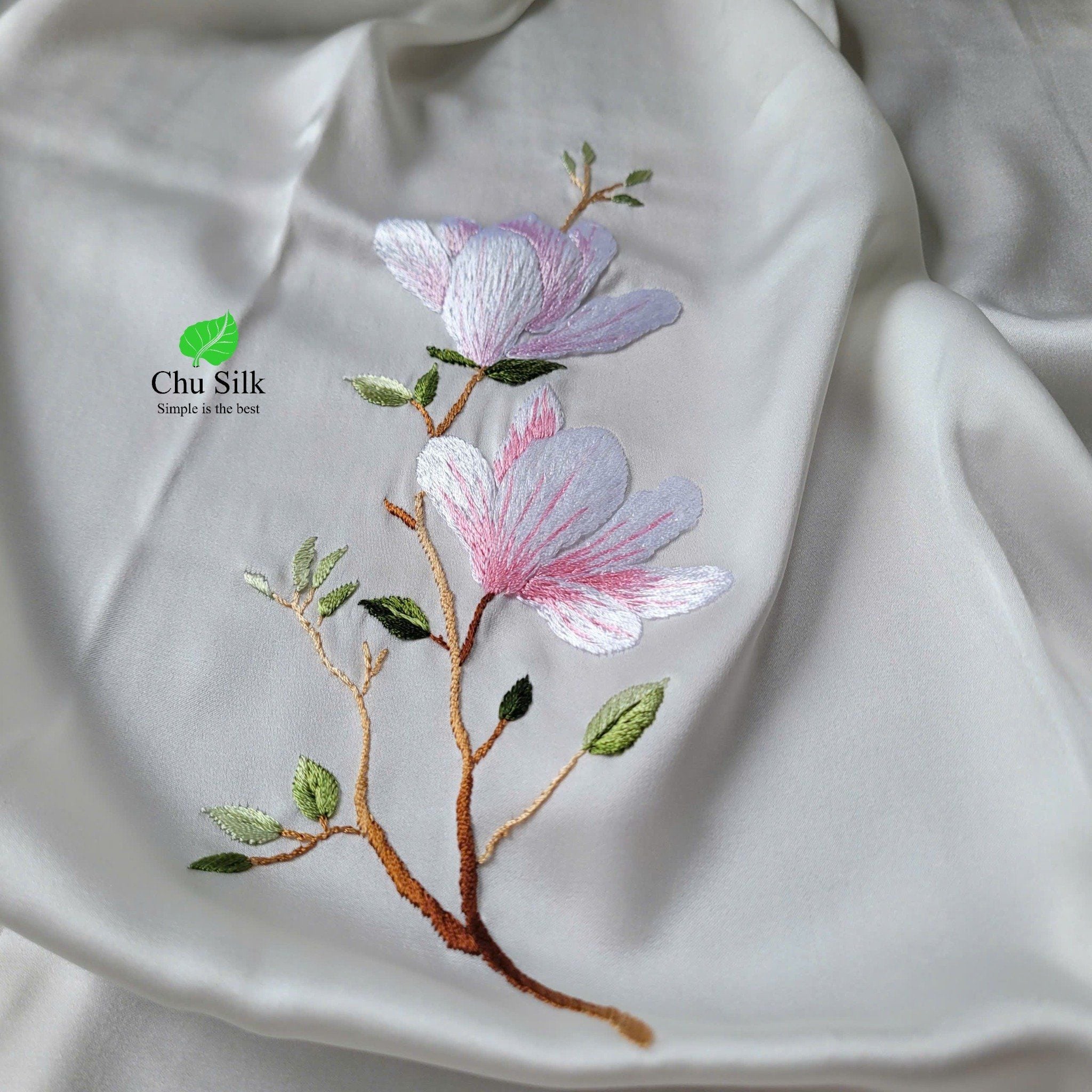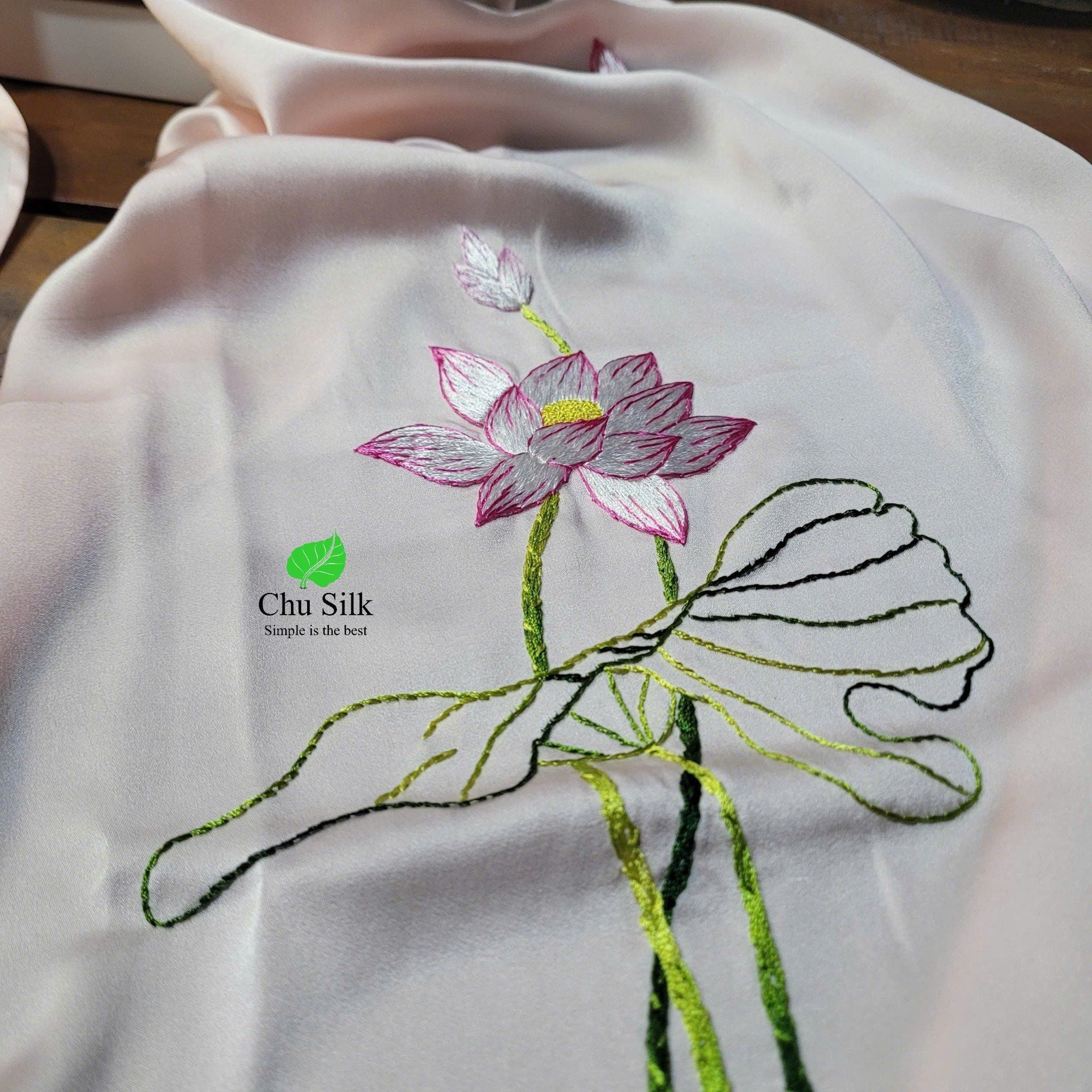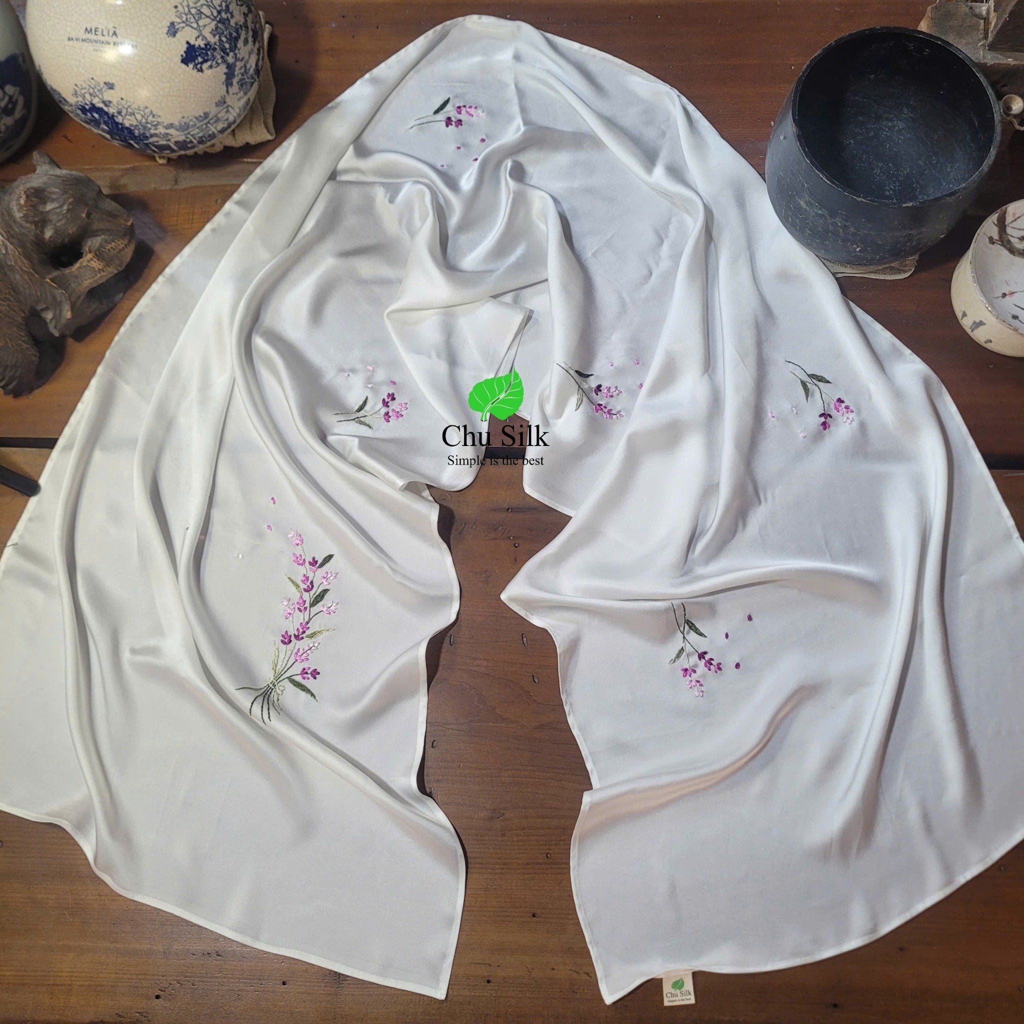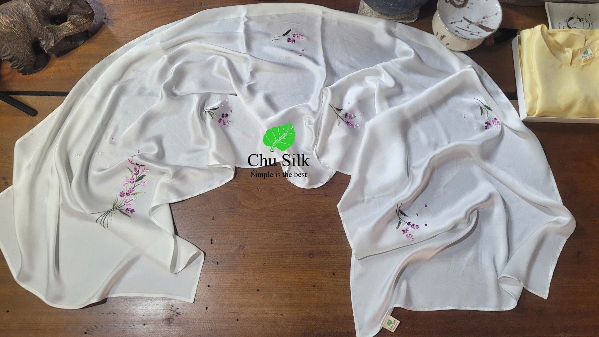Khăn choàng tơ tằm cao cấp thêu tay độc bản
