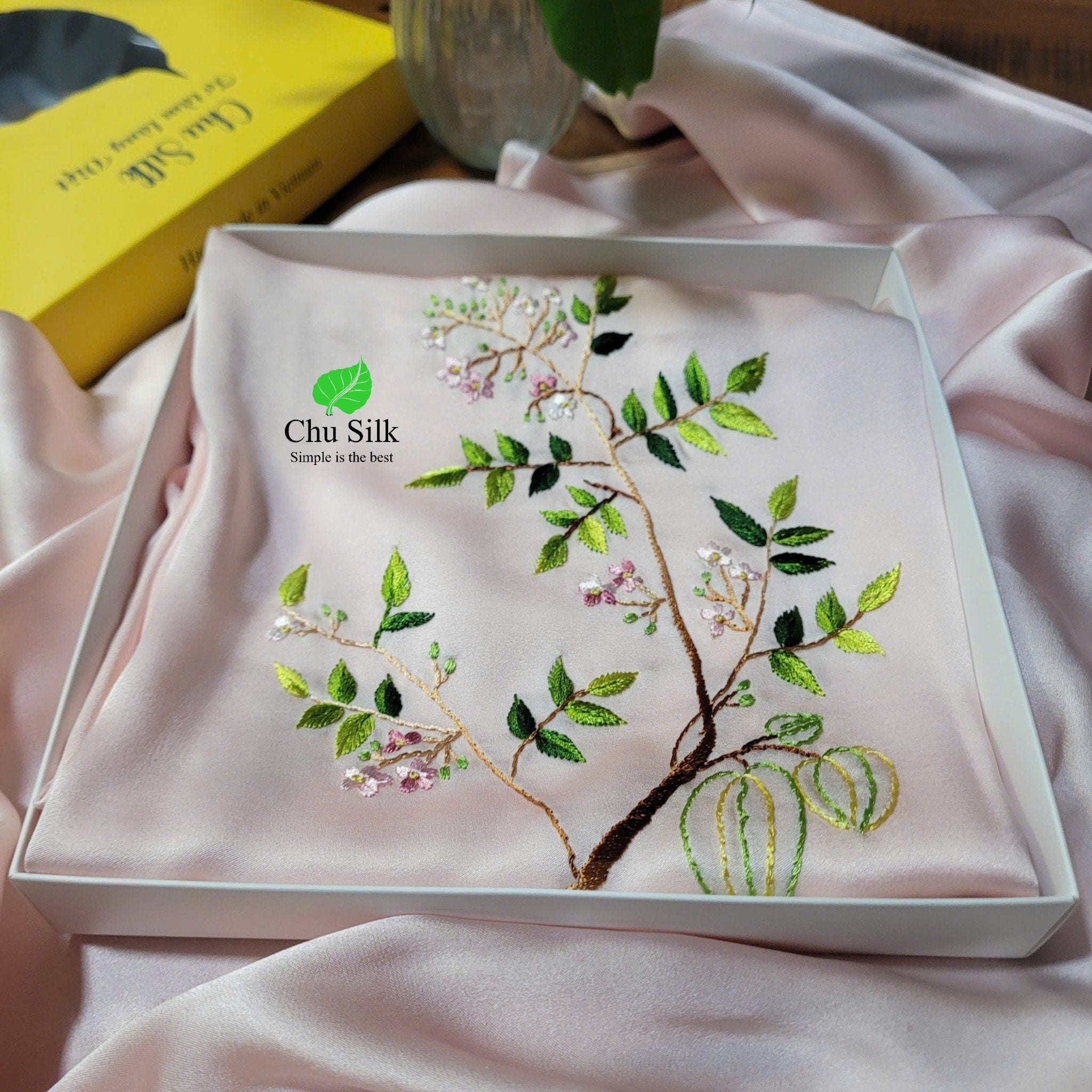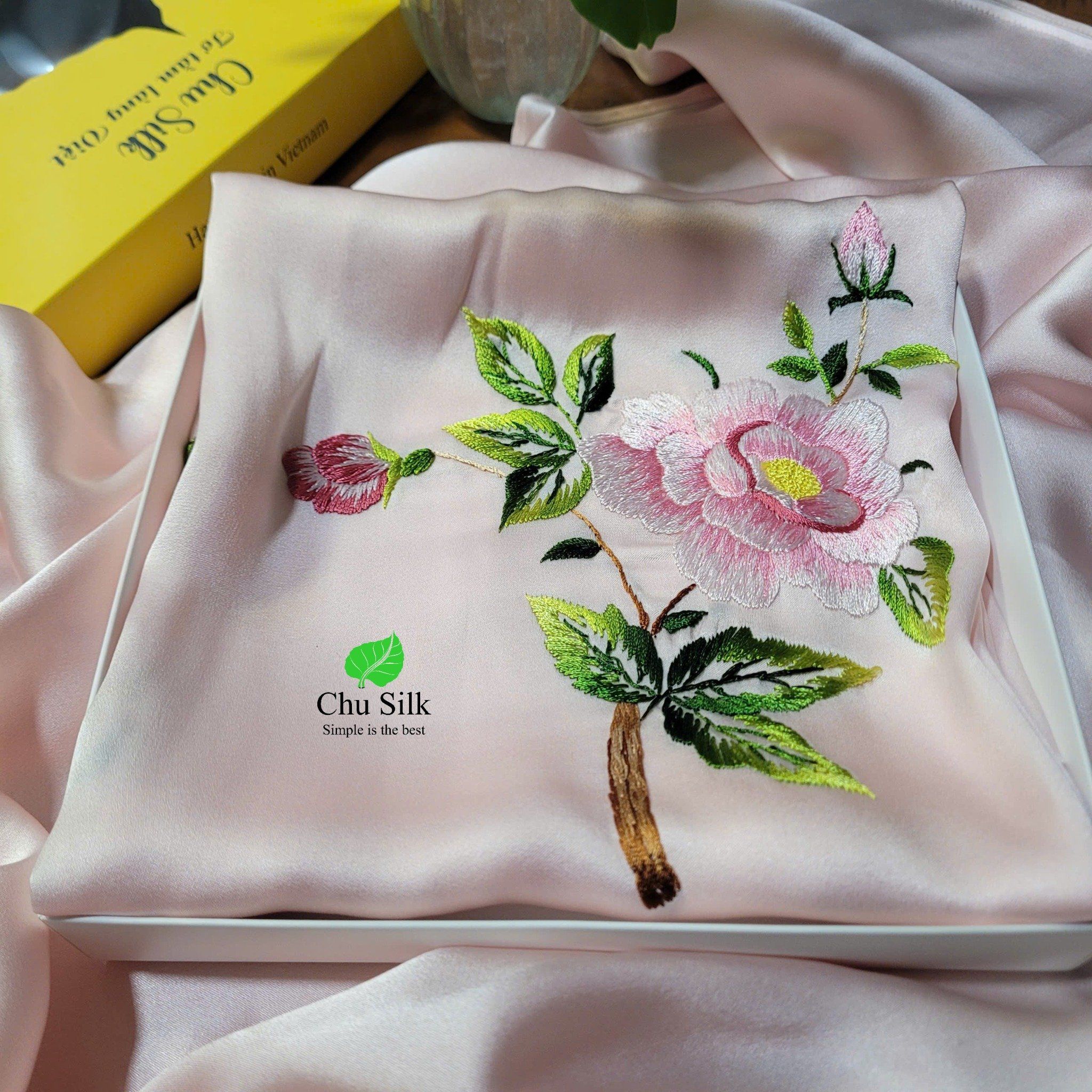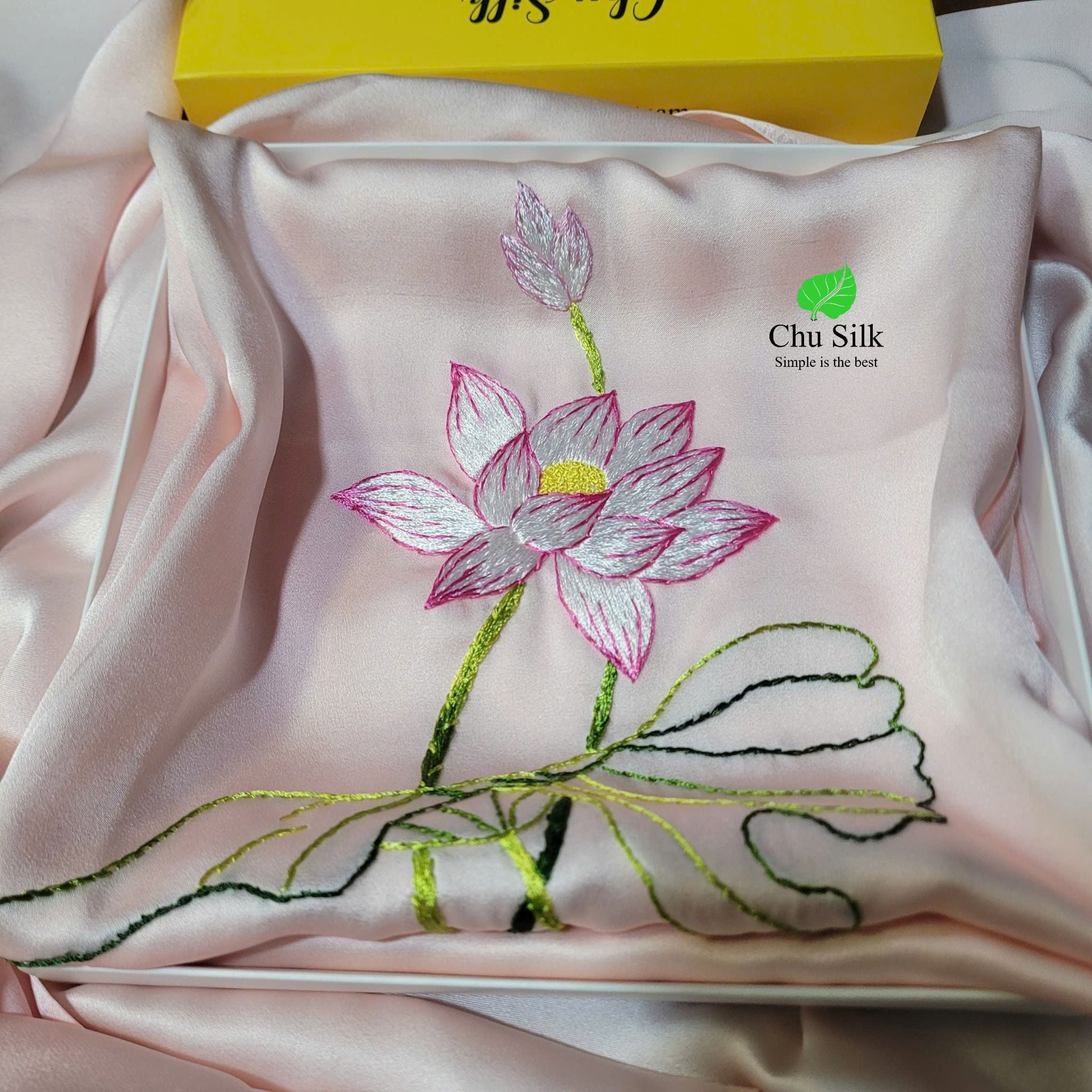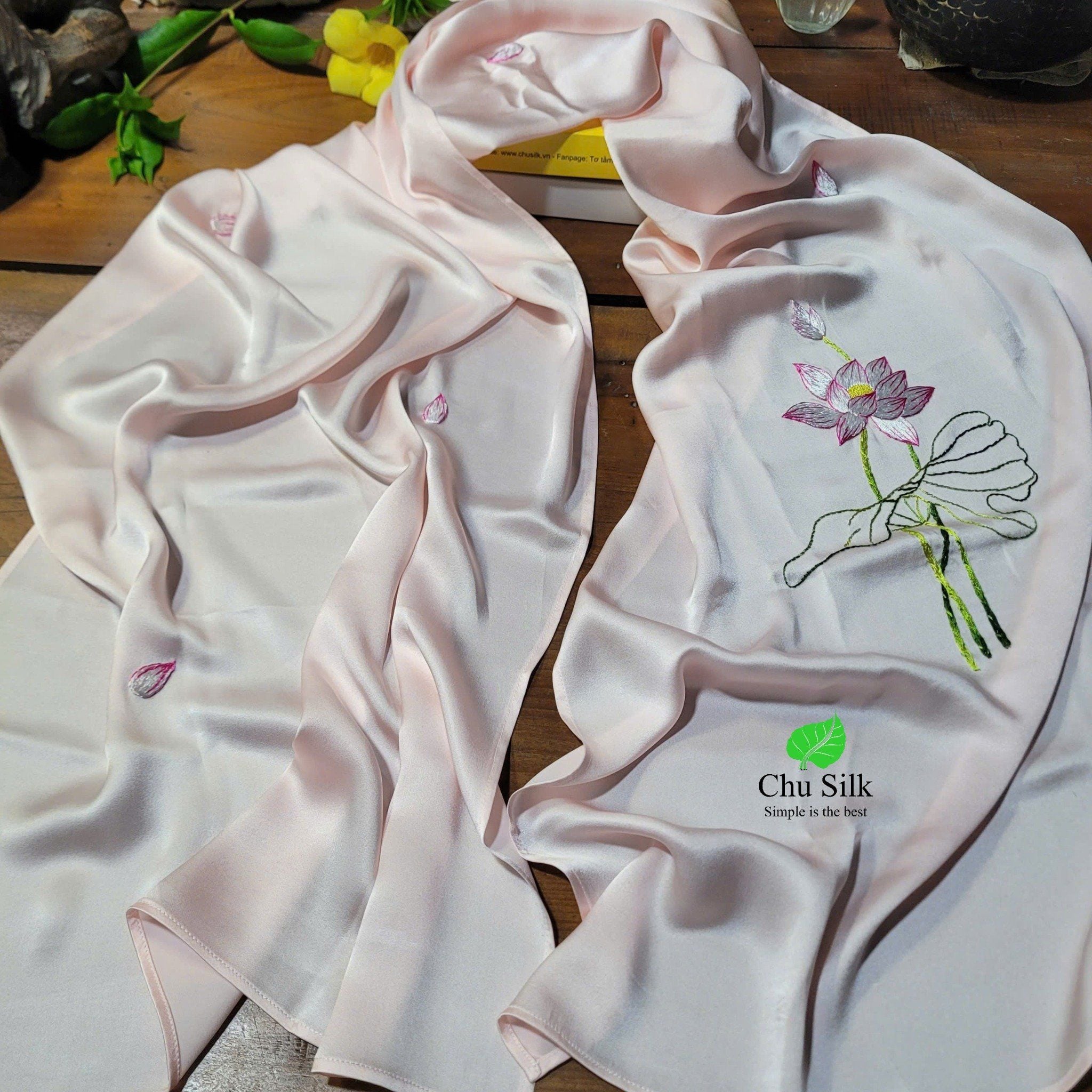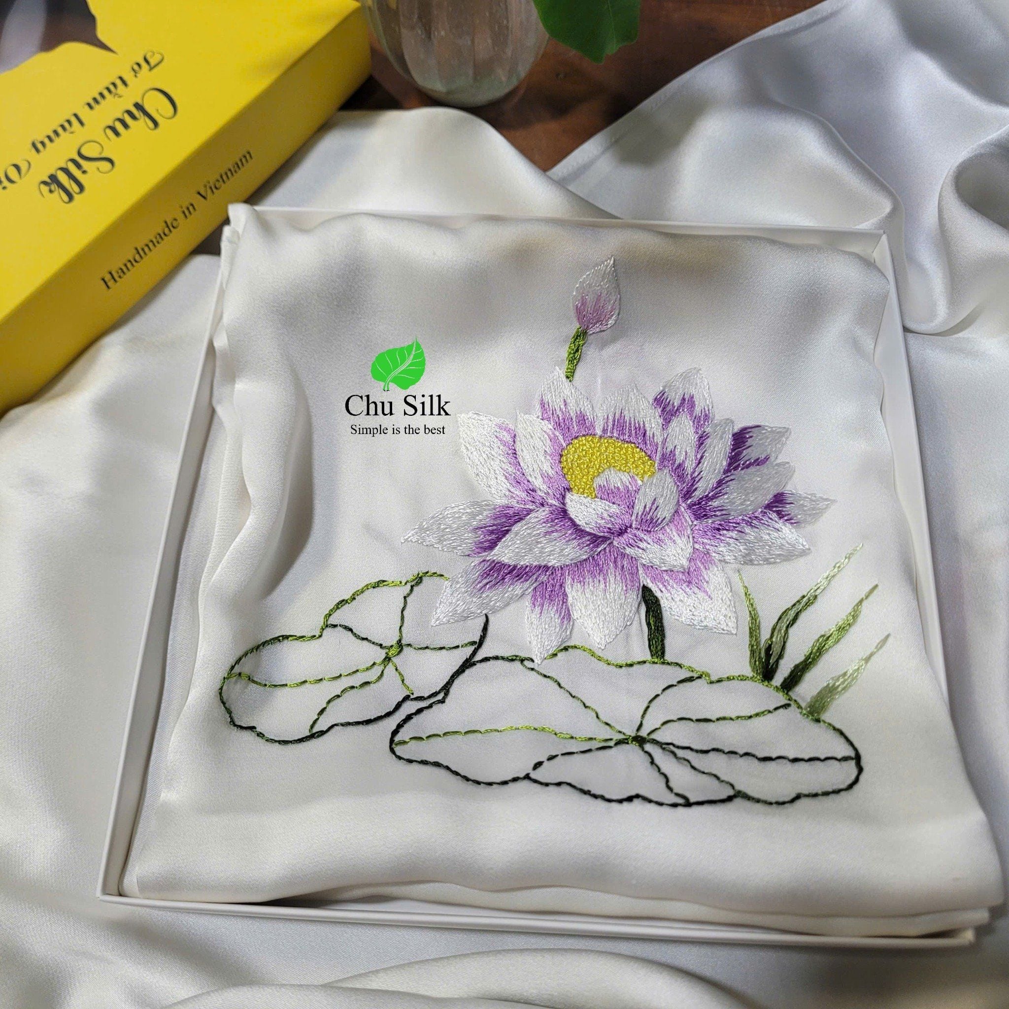 Những chiếc khăn thêu tay tinh xảo được thực hiện bởi nghệ nhân Hà Nội và nó xứng đáng là món quà ngoại giao cao cấp cho đối tác, quà hiếu thảo cho cha mẹ, quà biết ơn thầy cô, quà ý nghĩa cho bạn bè, người thương, quà thân thiện cho đồng nghiệp, hay món quà đặc biệt tự thưởng cho chính bản thân mình. Khăn được thêu chất liệu tơ tằm có độ óng ả cao.