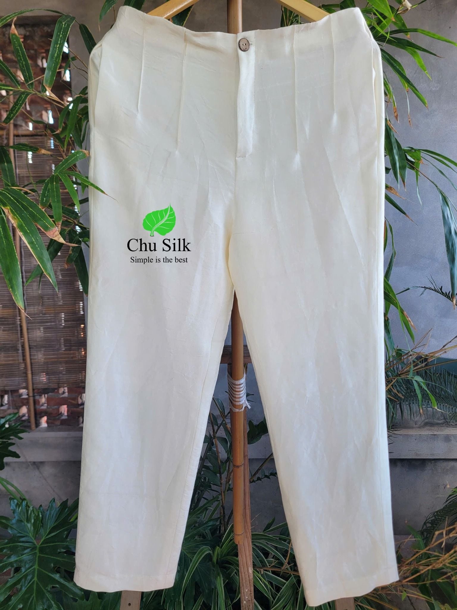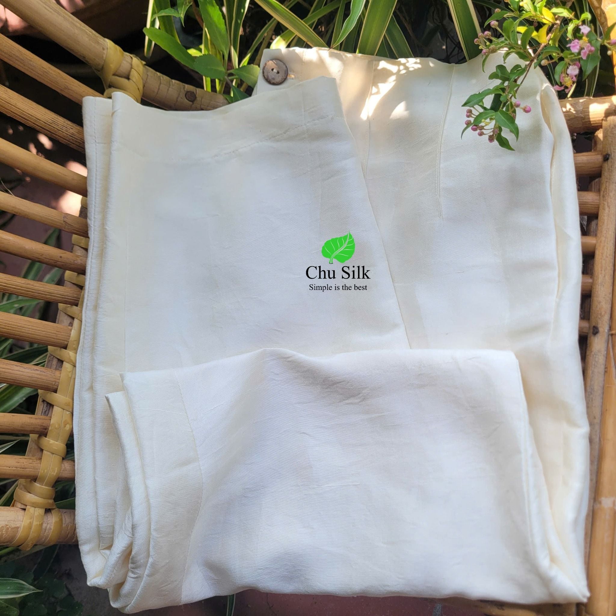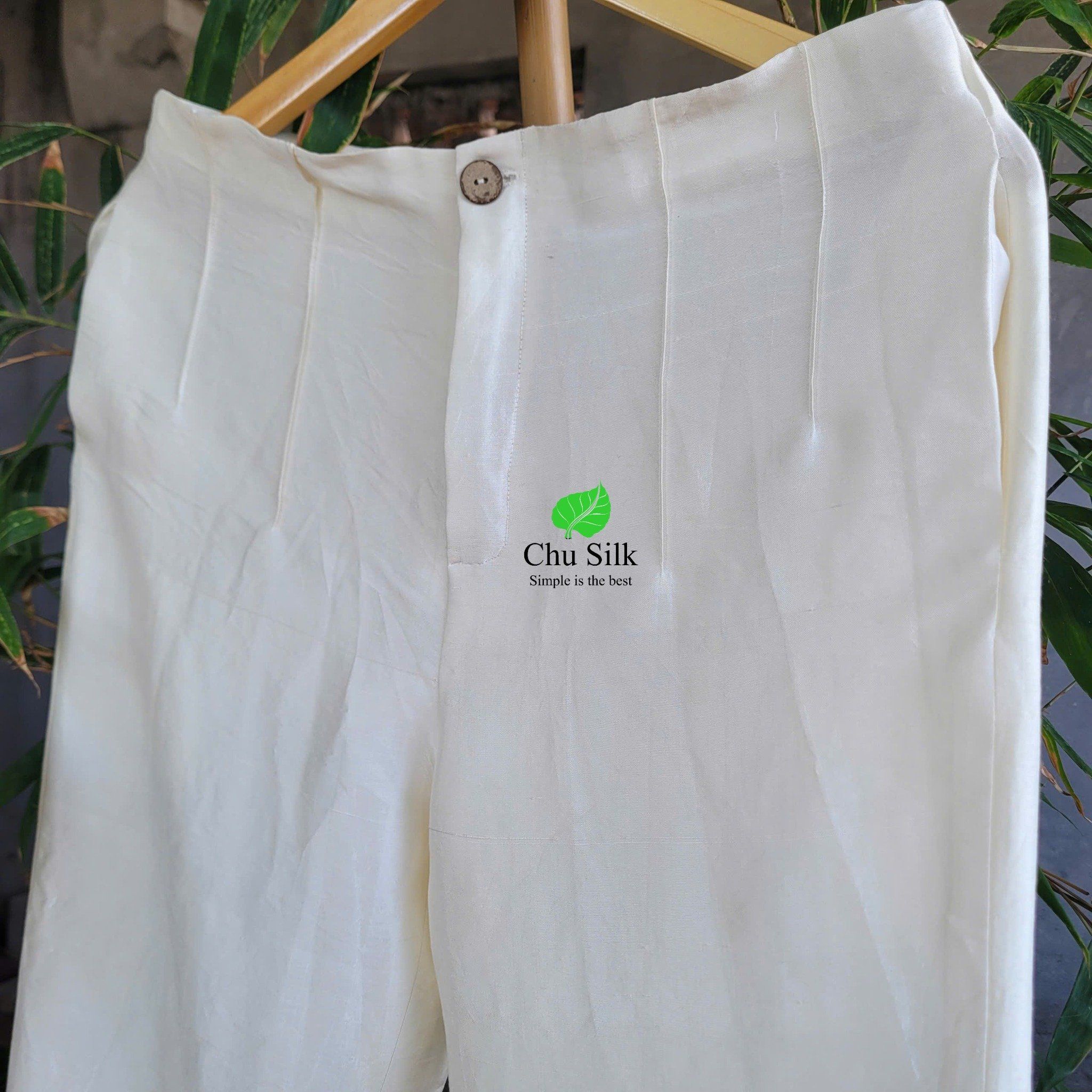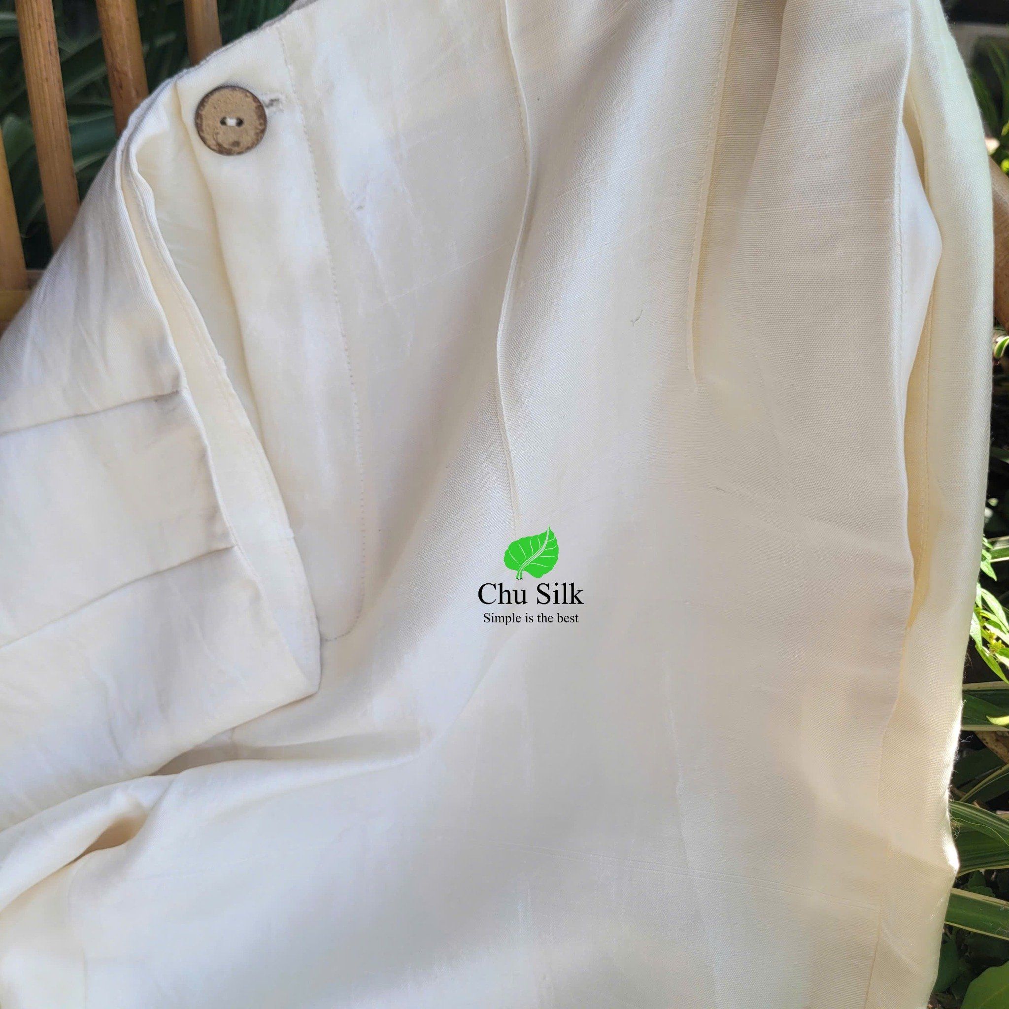Quần tơ tằm nguyên bản màu trắng cạp liền