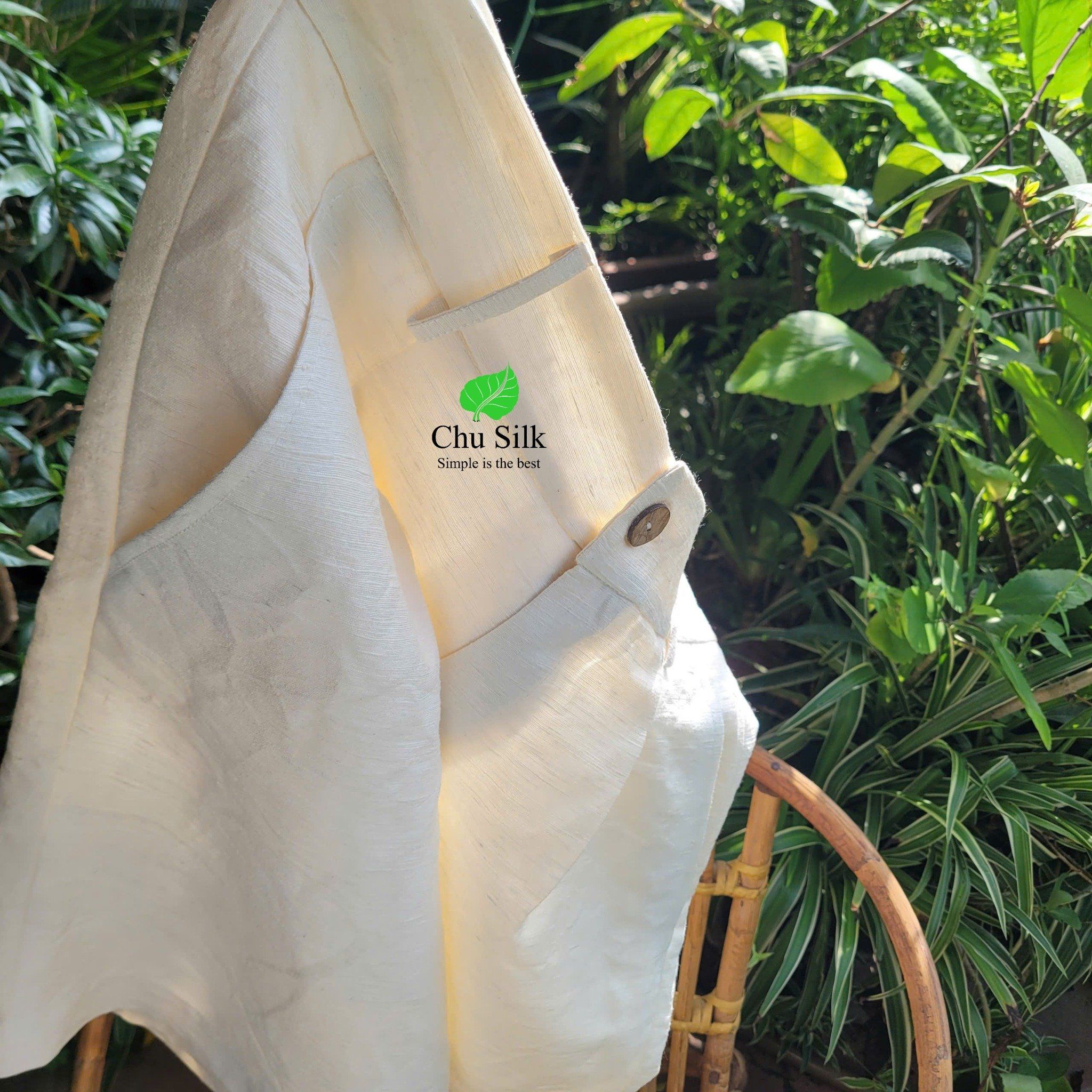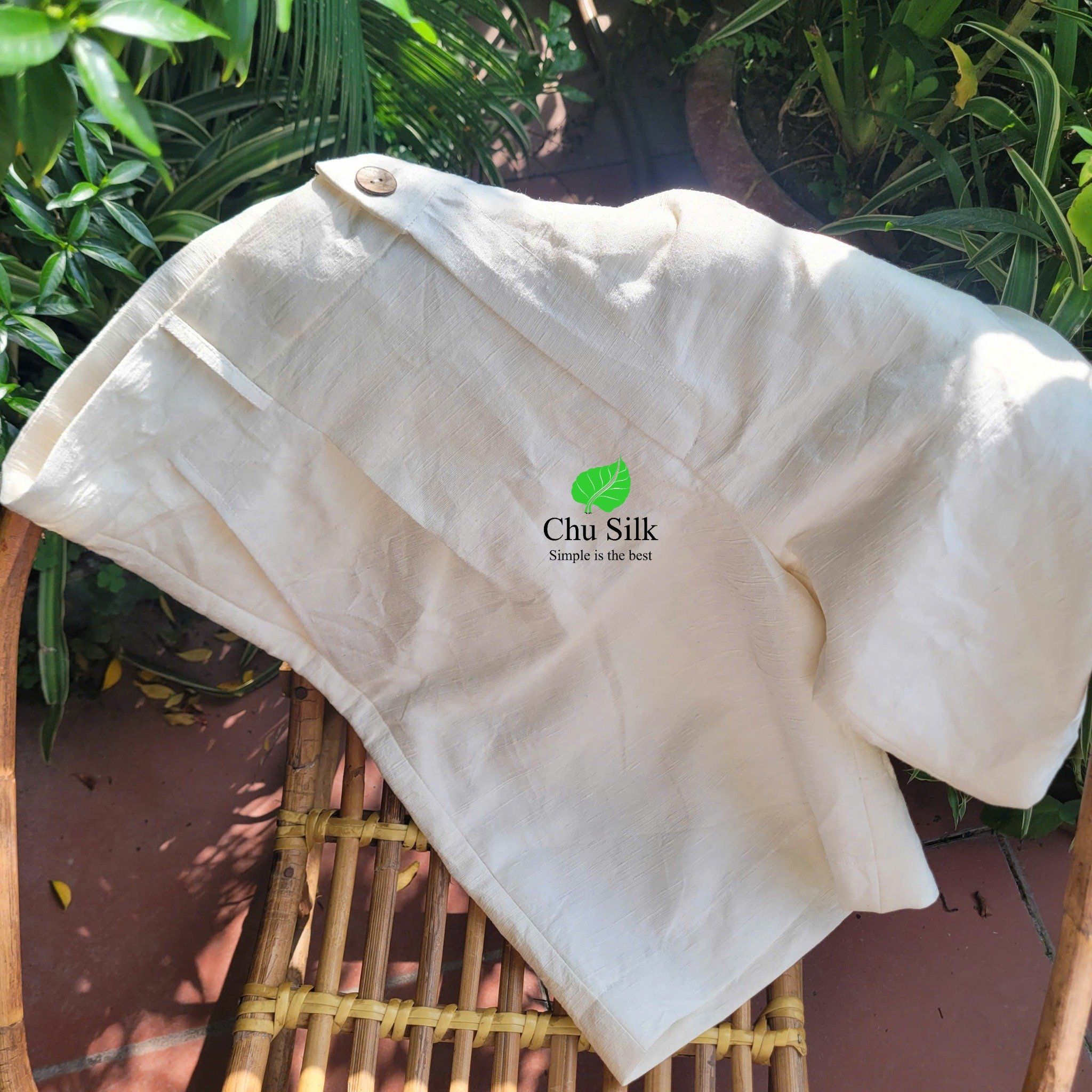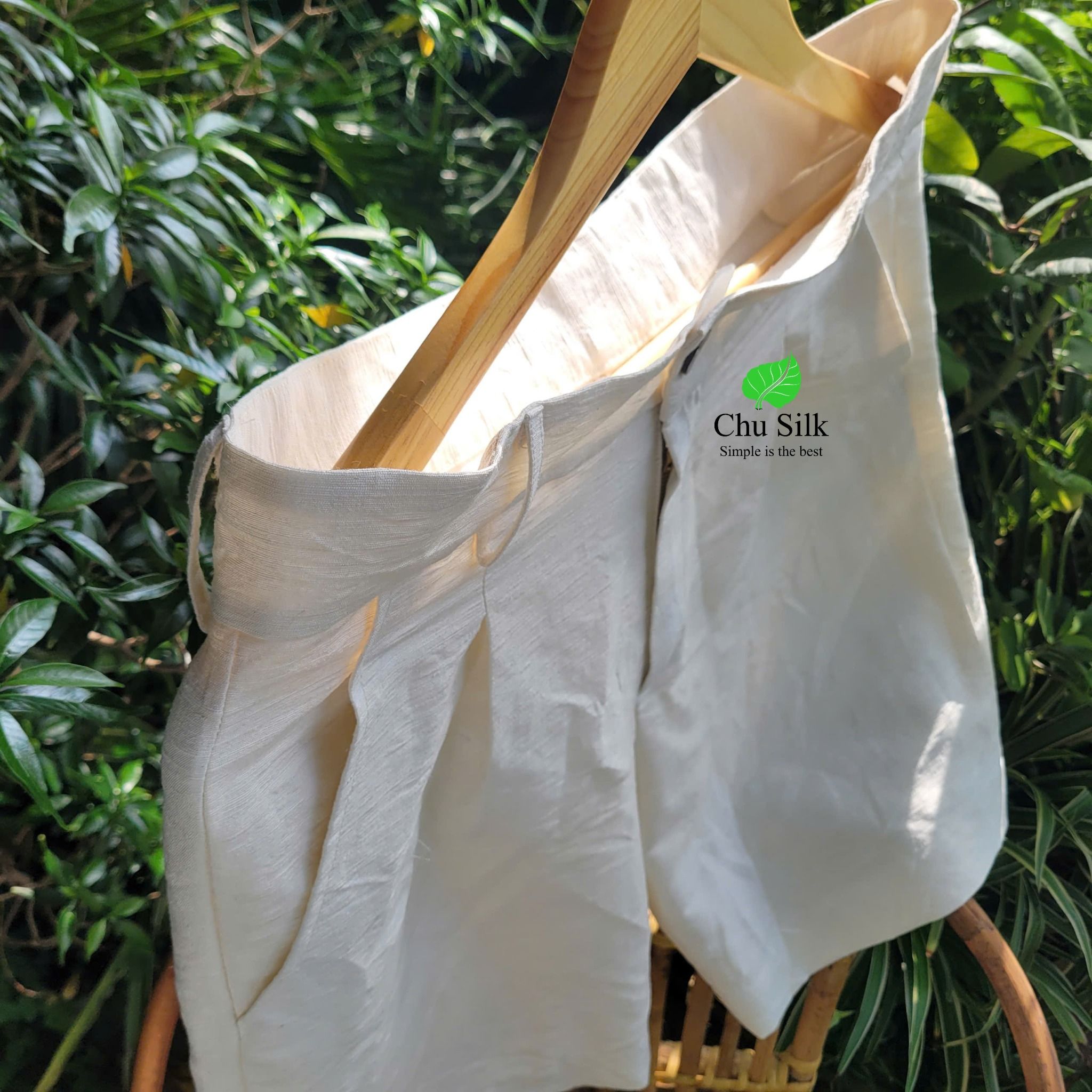Chiếc quần tơ tằm được may bằng sợi tơ tằm vê bằng tay nên có độ mộc mạc và gần gũi thiên nhiên nhiều hơn.